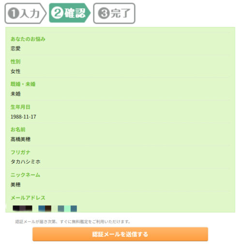 入力内容に間違いがないことを確認後、「認証メールを送信する」