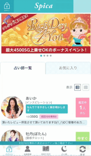 「Spica」に入ると、占い師さんがこんなにたくさん!