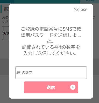 電話番号を登録するとSMSに4桁の数字が届くので入力すると、電話番号の登録完了です!