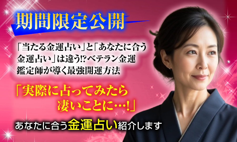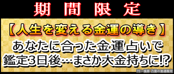 「今回限りのチャンスです!無料であなたに合った本格的鑑定で金運占いができますので、人生逆転したい方は是非占ってみてくださいね!」