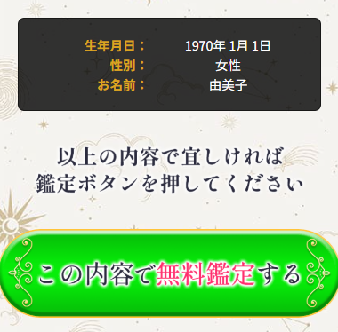 ④最後に入力内容に間違いがないことを確認後、「この内容で無料鑑定する」